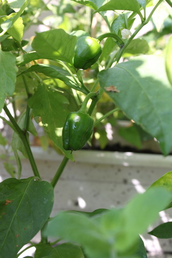 辣椒。之前一直落果,長不大,不知怎地自己捱過來了。
