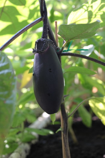 日本茄子。這個也很麻煩,漂亮是很漂亮沒錯,但一根實在太少,不知道怎麼做它比較好,看來也是小菜一碟的命。